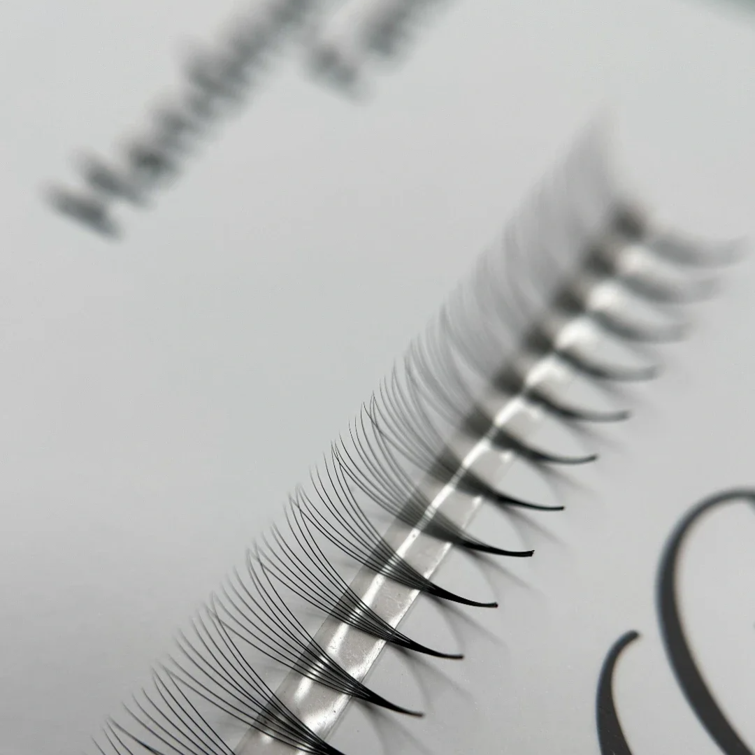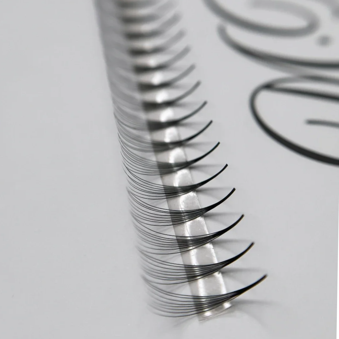 - 1.000 vorgefertigte 8D Wimpernfächer auf Klebestreifen.